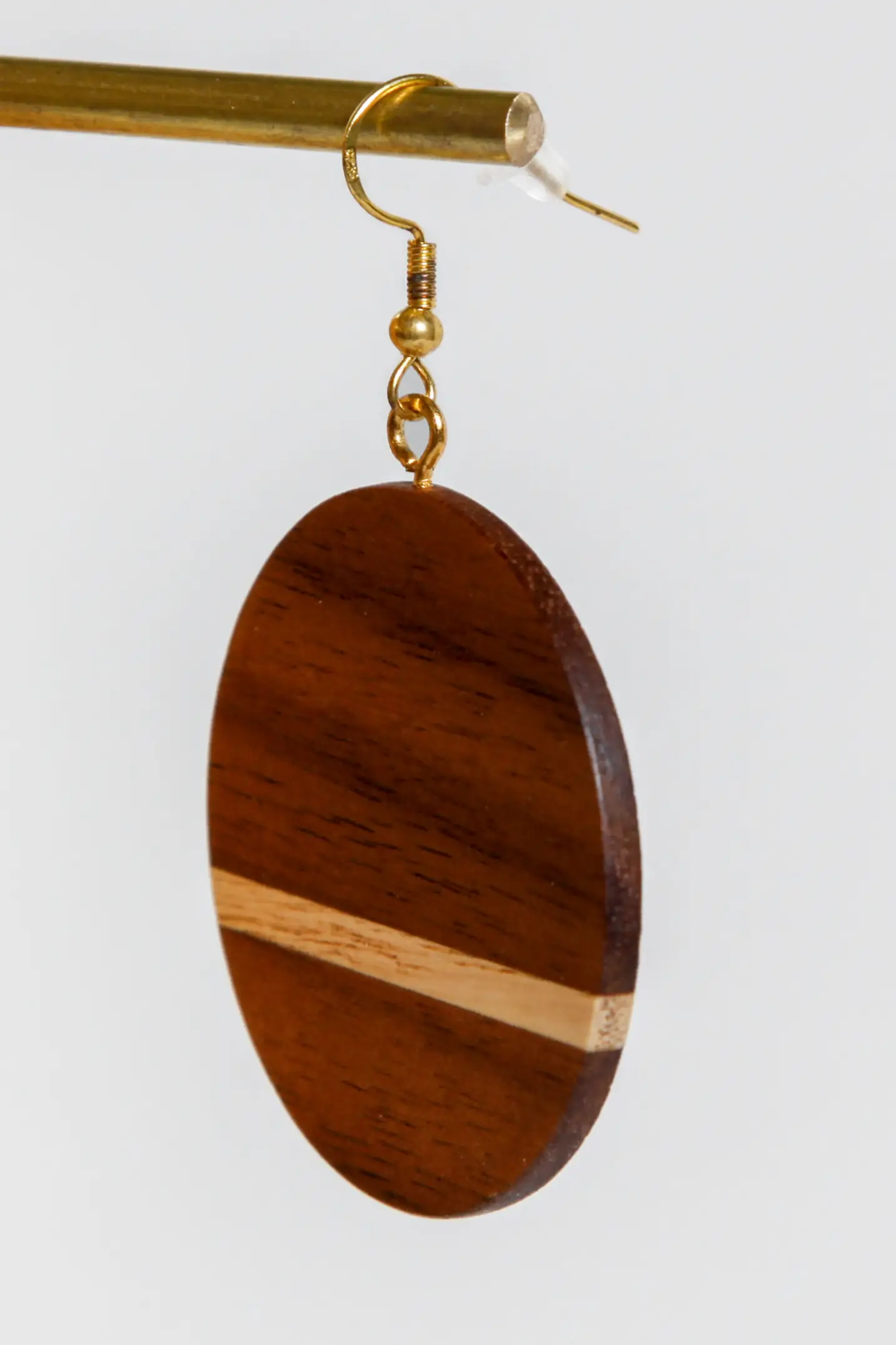 Feine Holzohrringe gefertigt aus Kirsch-, Nussbaum- oder Ahornholz. Die natürliche Maserung macht jedes Paar zu einem echten Unikat.